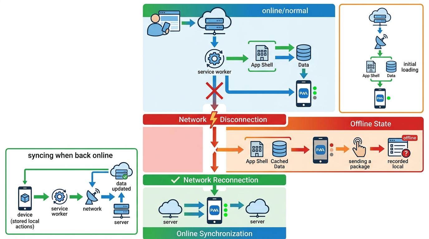 要理解它为什么能在断网时还能用,得先搞懂**渐进式Web应用(PWA)**——一种能像原生App一样离线运行、却不用下载安装的网页应用。你可以把它想象成一个带随身仓库的快递员:平时在网上接单,但随身带着常用的包裹,没网的时候也能先把货送了,有网再补录信息。