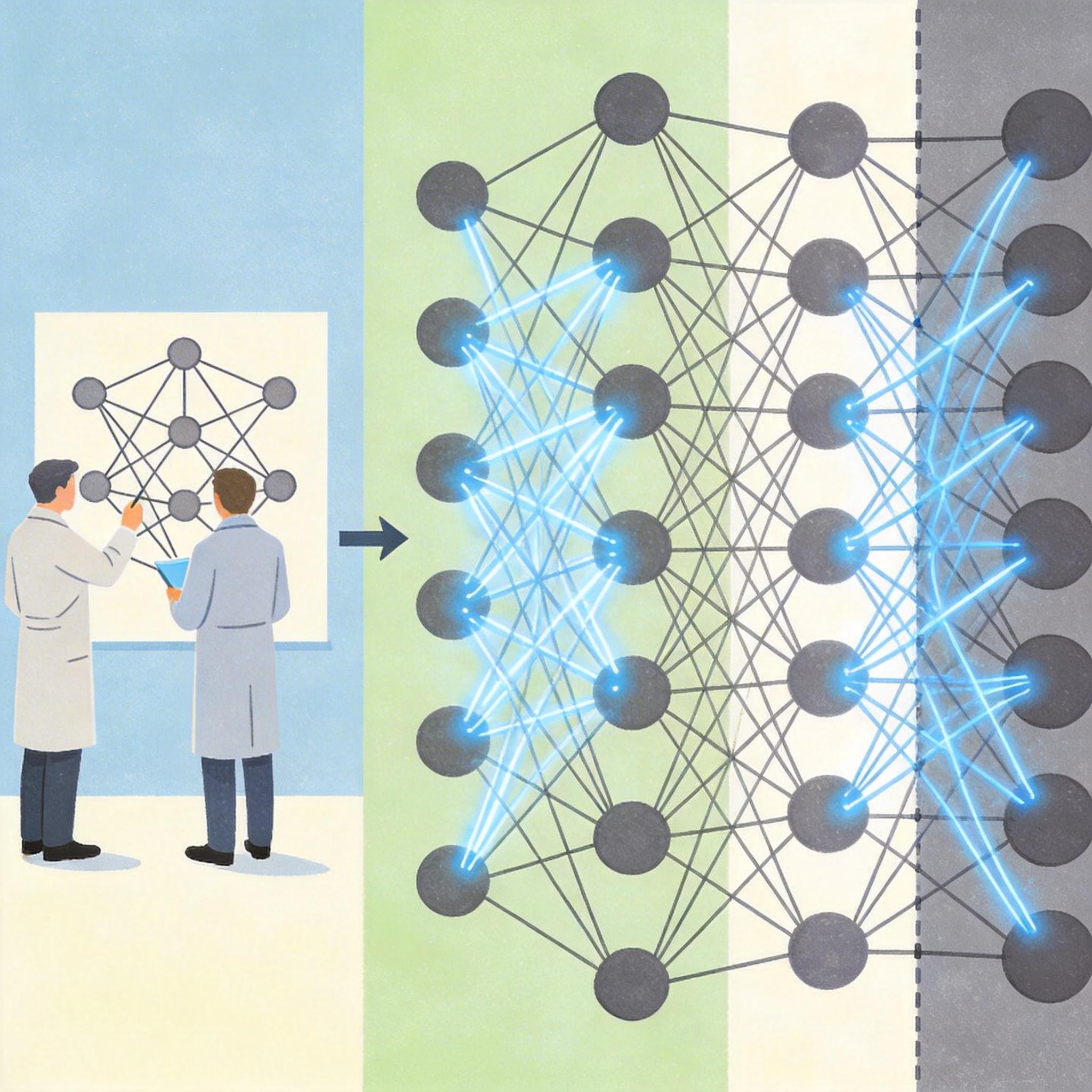 1943年,McCulloch和Pitts证明,二进制神经网络模型能实现任意逻辑函数,但有个前提:参数由模型外的人手动调整。在这个模型里,“参数”是固定不变的“程序”,“神经元激活值”是运行时的“数据”——这是典型的计算机二元论。