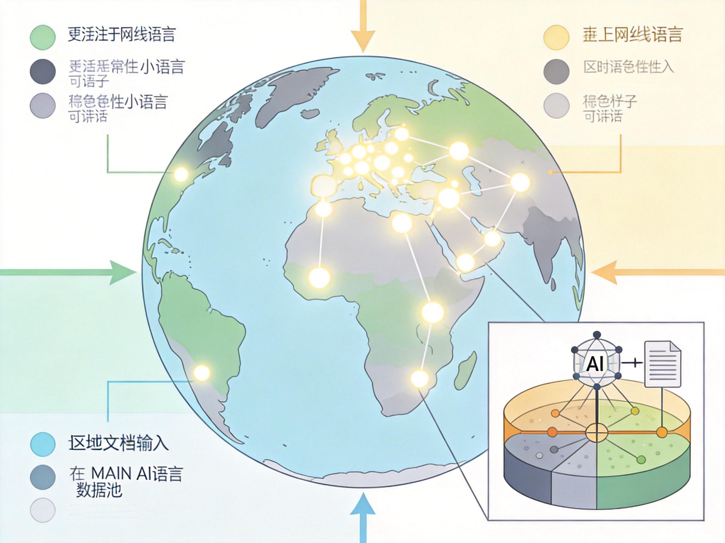 全球7000种语言中,只有不到5%能在网络上找到足够数据,那些小众语言、方言正在被AI的“主流语言偏好”边缘化。就像智利的Latam-GPT,必须专门收集本地议会记录、地方文献来训练,才能避免被英语文化完全同化。