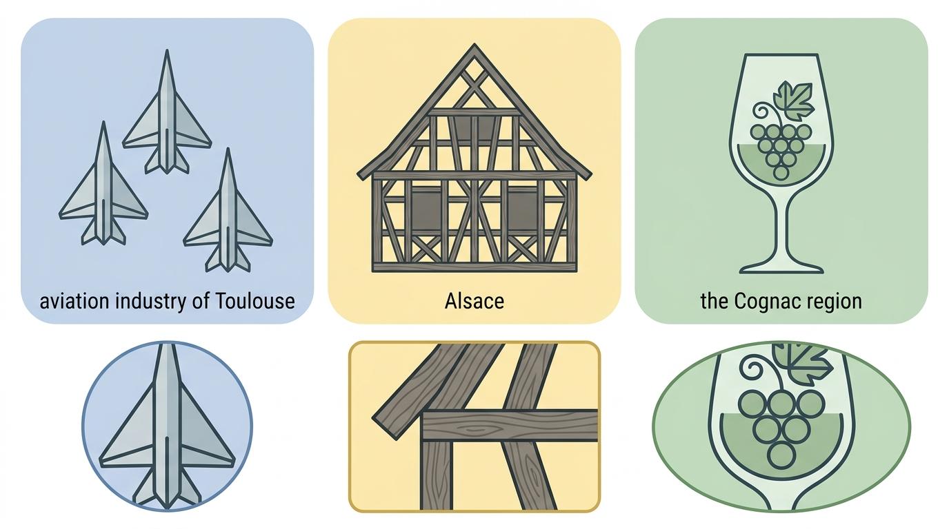 符号设计遵循“象形文字”原则——用三架飞机代表图卢兹的航空工业,用半木结构房屋指代阿尔萨斯,用葡萄酒杯里的葡萄标记干邑产区。这些符号摒弃所有冗余细节,只保留最具辨识度的视觉特征,像埃及象形文字一样实现跨语言的无差别理解。文字则统一采用瑞士设计师Adrian Frutiger的Helvetica小写字体,这种无衬线字体的笔画均匀度,能让眼睛在高速移动时最快捕捉到完整语义。