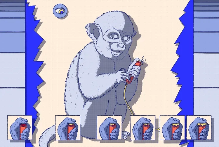 1969年的一间实验室里,松鼠猴的举动推翻了当时行为科学的常识:它反复按下杠杆,而每一次按压都会提前触发电击——这相当于主动给自己找不痛快。在另一种规则下,按杠杆只会在固定时间后触发电击,猴子却几乎不碰。