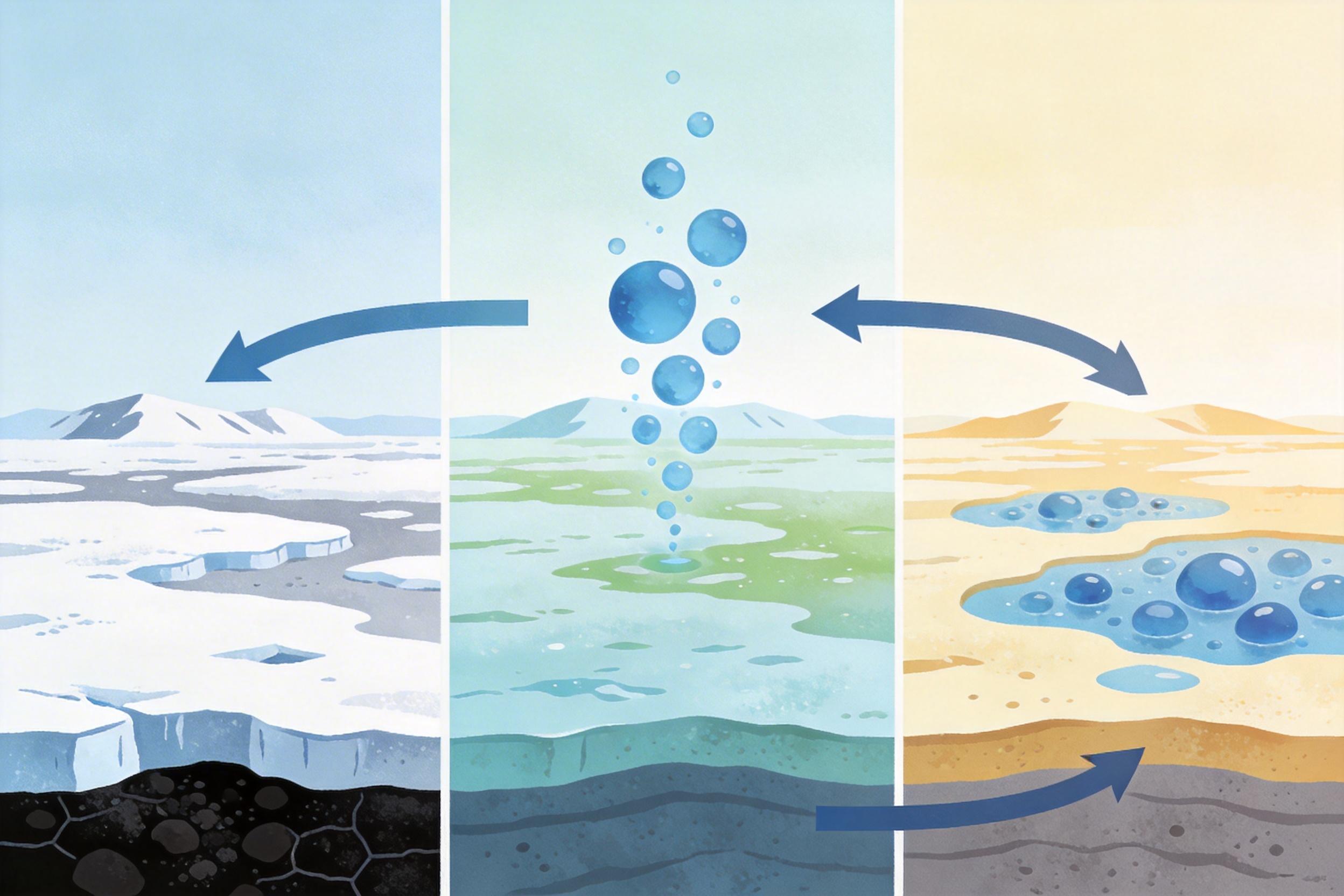 你或许没去过阿拉斯加北坡,但那里的一块冰正在影响你的夏天。这片比威斯康星州还大的冻土带,已经冰封了上万年——里面锁着的有机碳,是如今大气中碳总量的两倍。2026年春,马萨诸塞大学的科学家用44年的观测数据拼出了一幅清晰的画面:这里的冻土正在以肉眼看不见的速度裂开,每年有超过2.75亿吨古老碳顺着河流涌入海洋,一部分直接变成二氧化碳飘回大气。而这一切,只是一个开始。为什么北极的冰融化,会和我们的气候绑定?