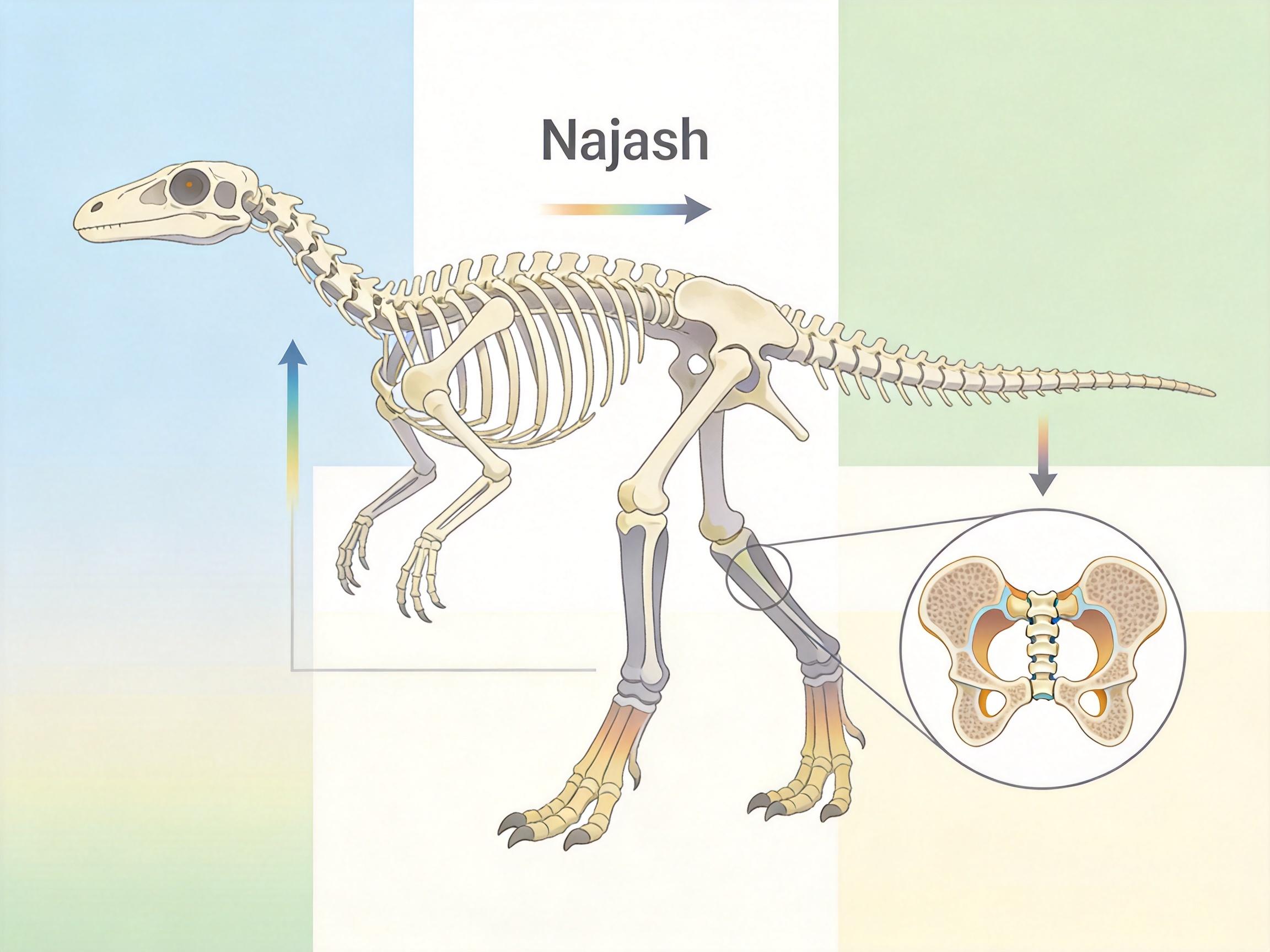 更有意思的是,Najash的后肢不是退化的残迹,而是真正有功能的:它的骨盆和脊椎通过骶椎连接,这是四足动物的典型特征,说明它能用后肢支撑身体,甚至可能在捕猎时按住猎物。这意味着蛇类不是“一开始就没有腿”,而是先失去了前肢,后肢却足足保留了7000万年,直到白垩纪晚期才逐渐退化——比之前认为的时间晚了整整4000万年。
