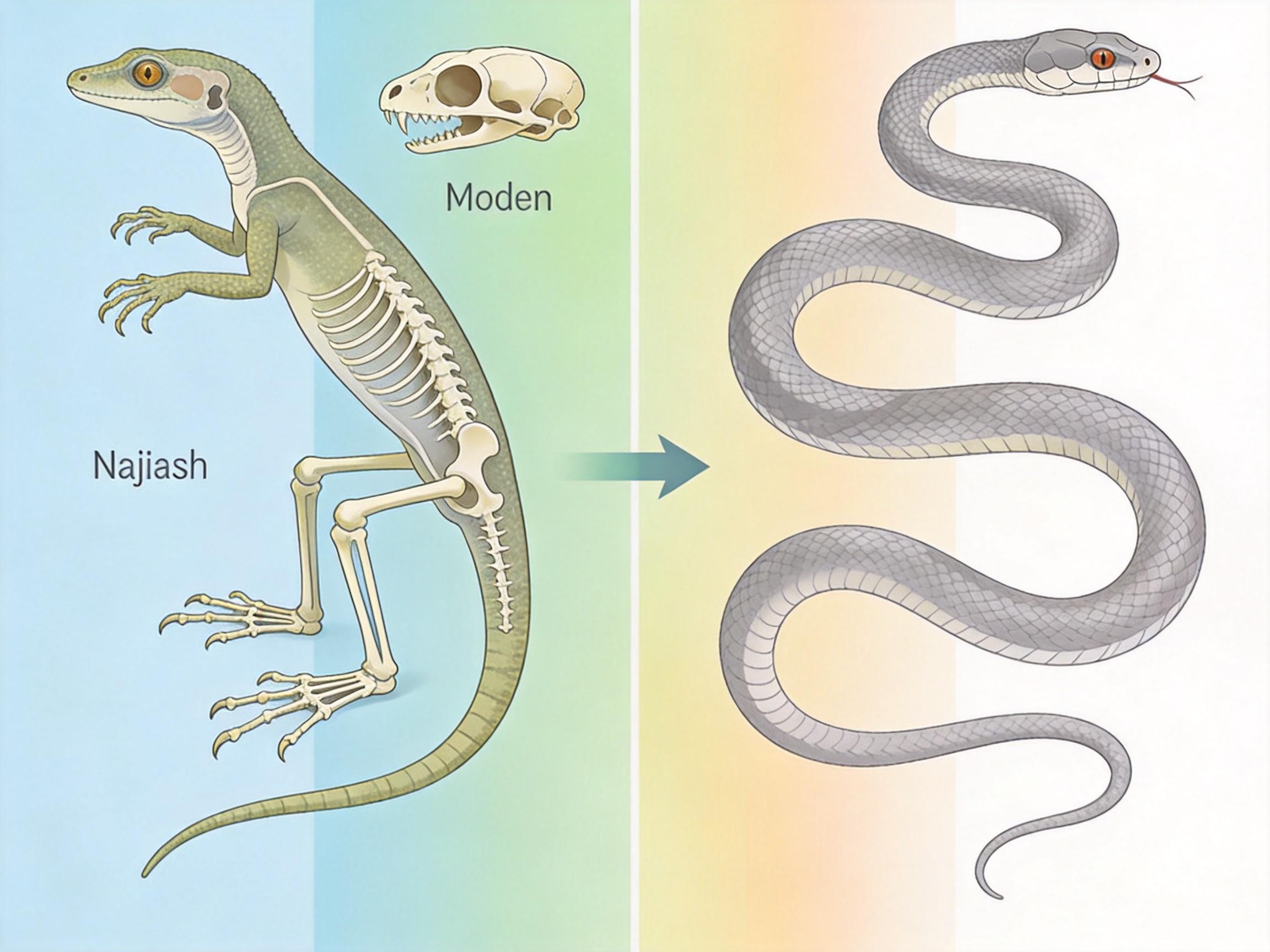 现在再看Najash的化石,它不再是一个“奇怪的长脚蛇”,而是蛇类演化史上最关键的“中间站”:它站在蜥蜴和现代蛇的交界处,一边保留着祖先的腿和颊骨,一边已经长出了蛇类特有的细长躯干和灵活头骨。