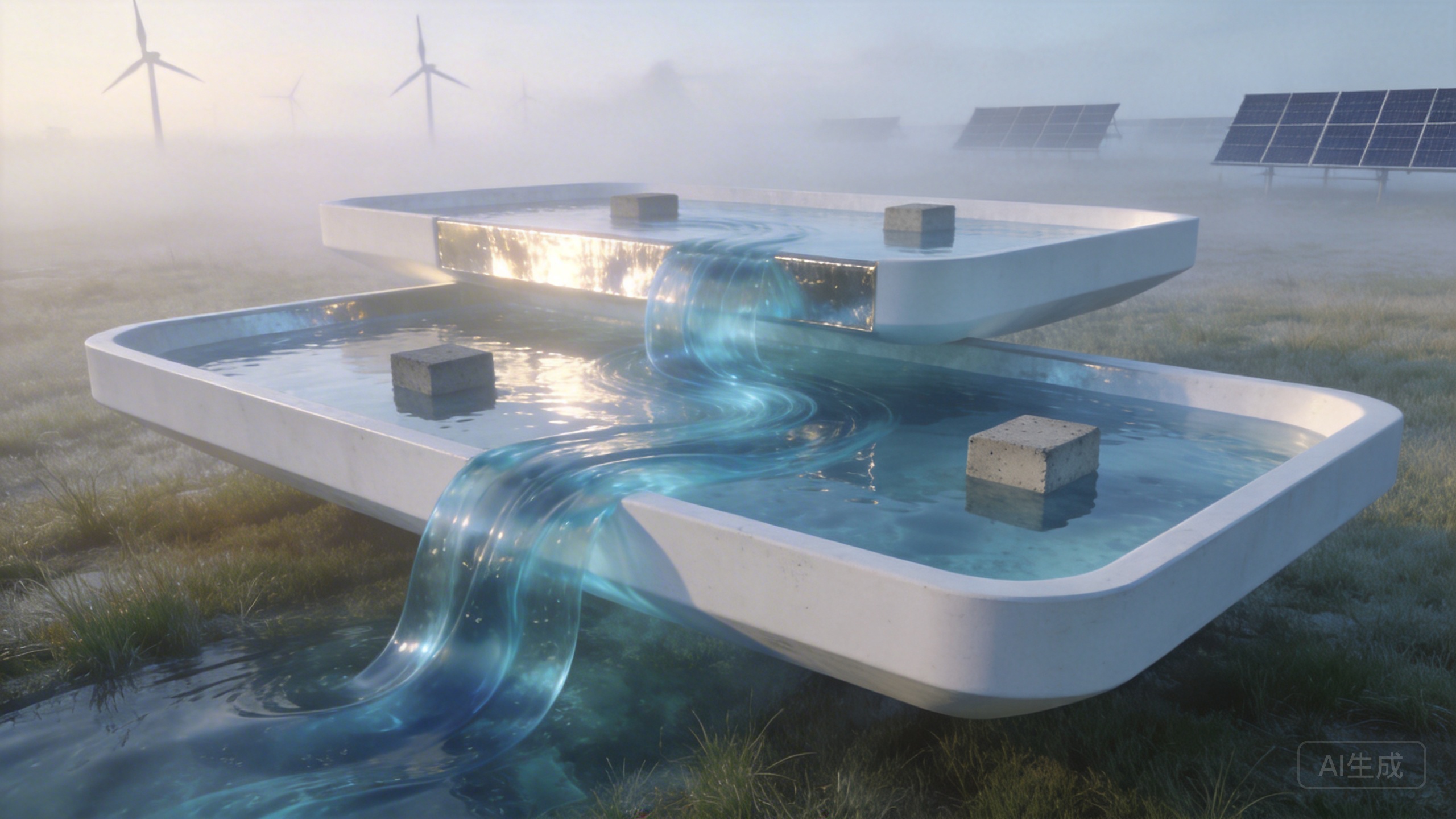 康伍德试点项目本身就是一个绝佳例证。它的上水库建在80米的高度,下水库则是一个埋于地下的混凝土结构,贝尔特尼形容其为“一个巨大的游泳池”。整个系统形成一个封闭循环,地面上只有一个小小的发电站,内含涡轮机、泵和控制系统。这种小型化、模块化的设计,使得建设周期从传统水电的5到10年,缩短至短短几年。