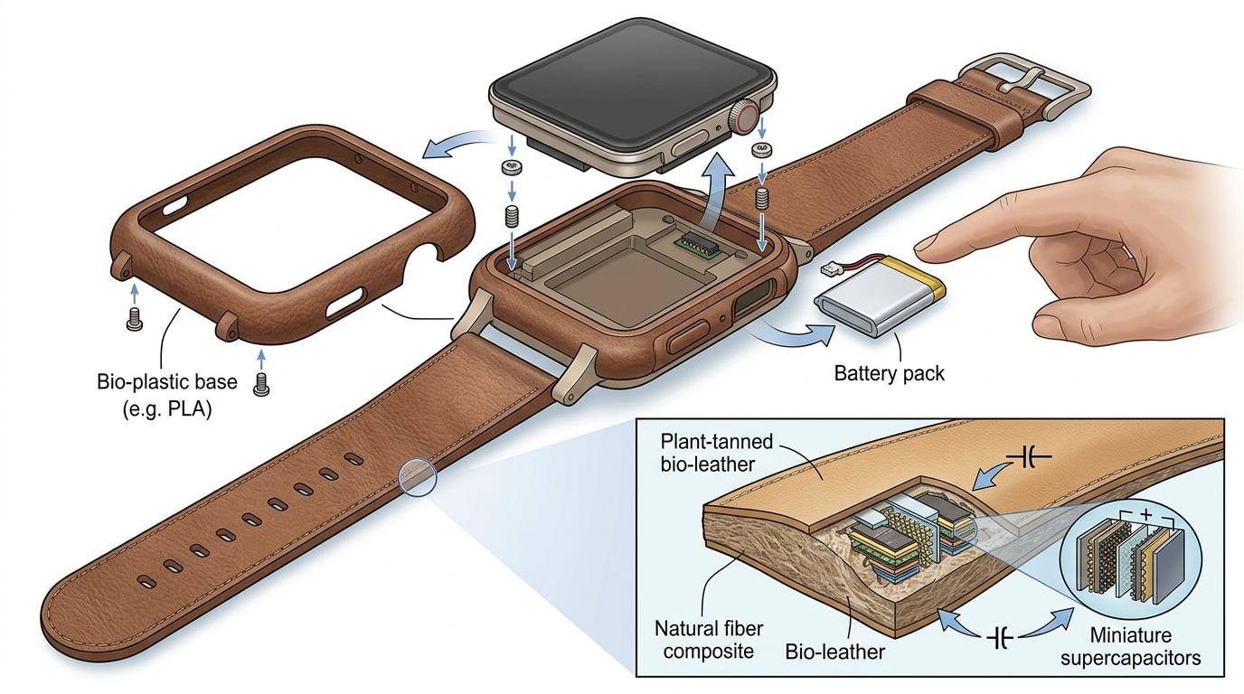 法规的风向也在推着行业往可持续方向走。欧盟2027年起要求可穿戴设备电池必须“易于拆卸”,这意味着厂商不能再把电池焊死在机身里,既要保证设备轻薄防水,又得让用户能自己换电池。一些厂商已经开始用植物鞣革、聚乳酸这些可降解材料做表带,甚至在皮革里集成微型超级电容器,把表带变成能量存储的一部分。