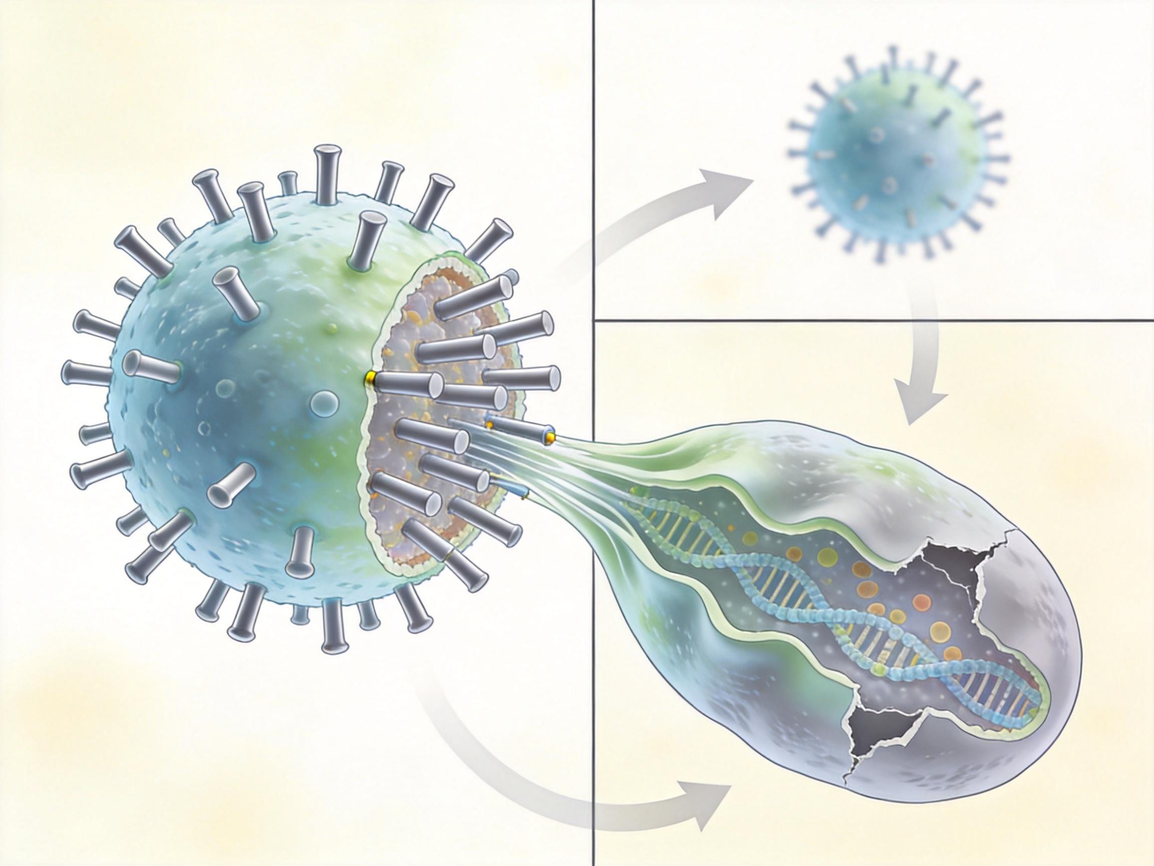 病毒的包膜就像一层薄气球,承受张力的极限只有约10兆帕。而密集排列的纳米柱能在接触点产生远超这个数值的应力,直接把包膜扯得四分五裂。电子显微镜下能清晰看到:人类副流感病毒的球形外壳被拉成不规则的椭球,包膜上布满褶皱和破口,内部的遗传物质暴露出来,彻底失去感染能力。