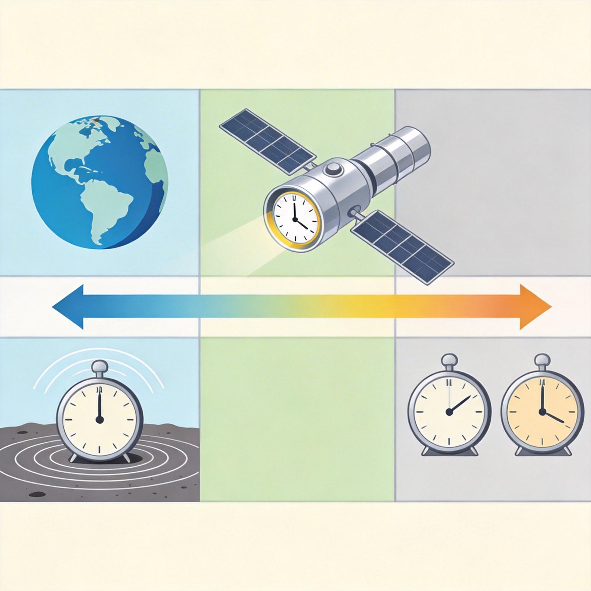 如果只是靠时间算距离,GPS的定位误差每天会累积到10公里以上——这不是设备的问题,而是地球引力和卫星速度在“玩弄时间”。 根据狭义相对论,卫星以每秒4公里的速度绕地球飞行,它的时间会比地面慢,每天慢约7微秒;而根据广义相对论,卫星在2万公里高空,受到的地球引力比地面弱,时间又会比地面快,每天快约45微秒。两者叠加,卫星的时钟每天会比地面快38微秒。