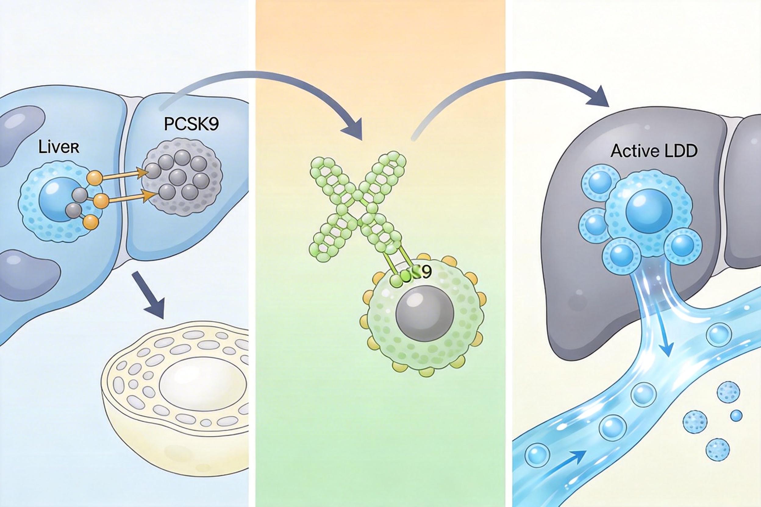 要理解这背后的逻辑,得先搞懂PCSK9抑制剂的本事——它像个“胆固醇回收官”:肝脏表面的LDL受体本是清理血液中坏胆固醇的清洁工,PCSK9蛋白却会把这些清洁工拖去溶酶体销毁。而依洛尤单抗能死死缠住PCSK9,让清洁工们留在岗位上持续干活,把坏胆固醇的清除效率拉满。更关键的是,它不仅能降LDL-C,还能顺带降低脂蛋白(a)——这种独立的心血管风险因子,是他汀很难撼动的。