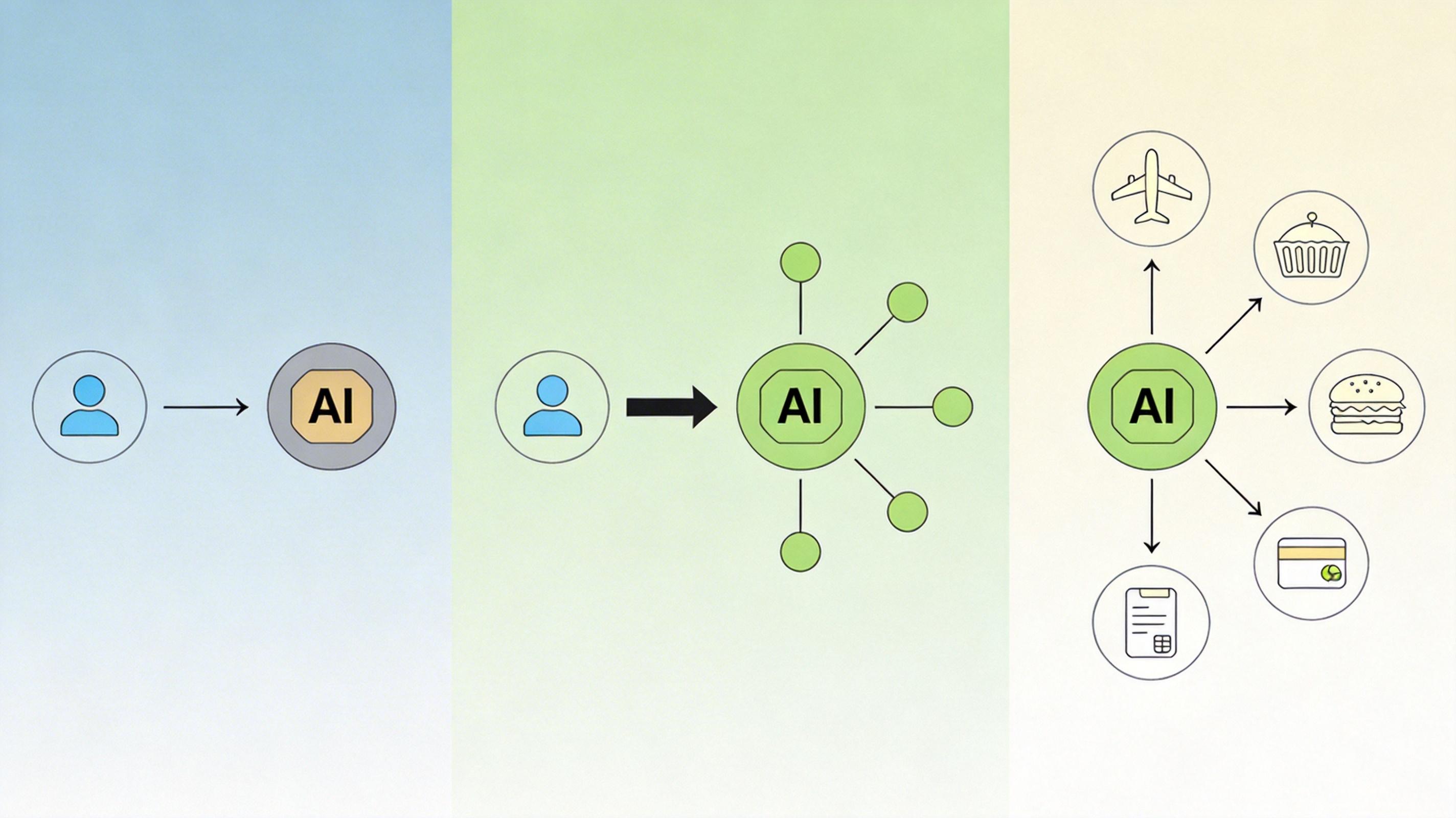 现在你用AI,大多是「你说它做」:让它写文案,它就写文案;让它查资料,它就查资料。但AI的下一站是「AI代理」——它能像你的助理一样,主动帮你完成多步骤任务:比如你说「帮我订下周五去上海的机票,再预订外滩附近的餐厅」,它会自己查航班、比价、选餐厅、下单,不用你再一步步指挥。