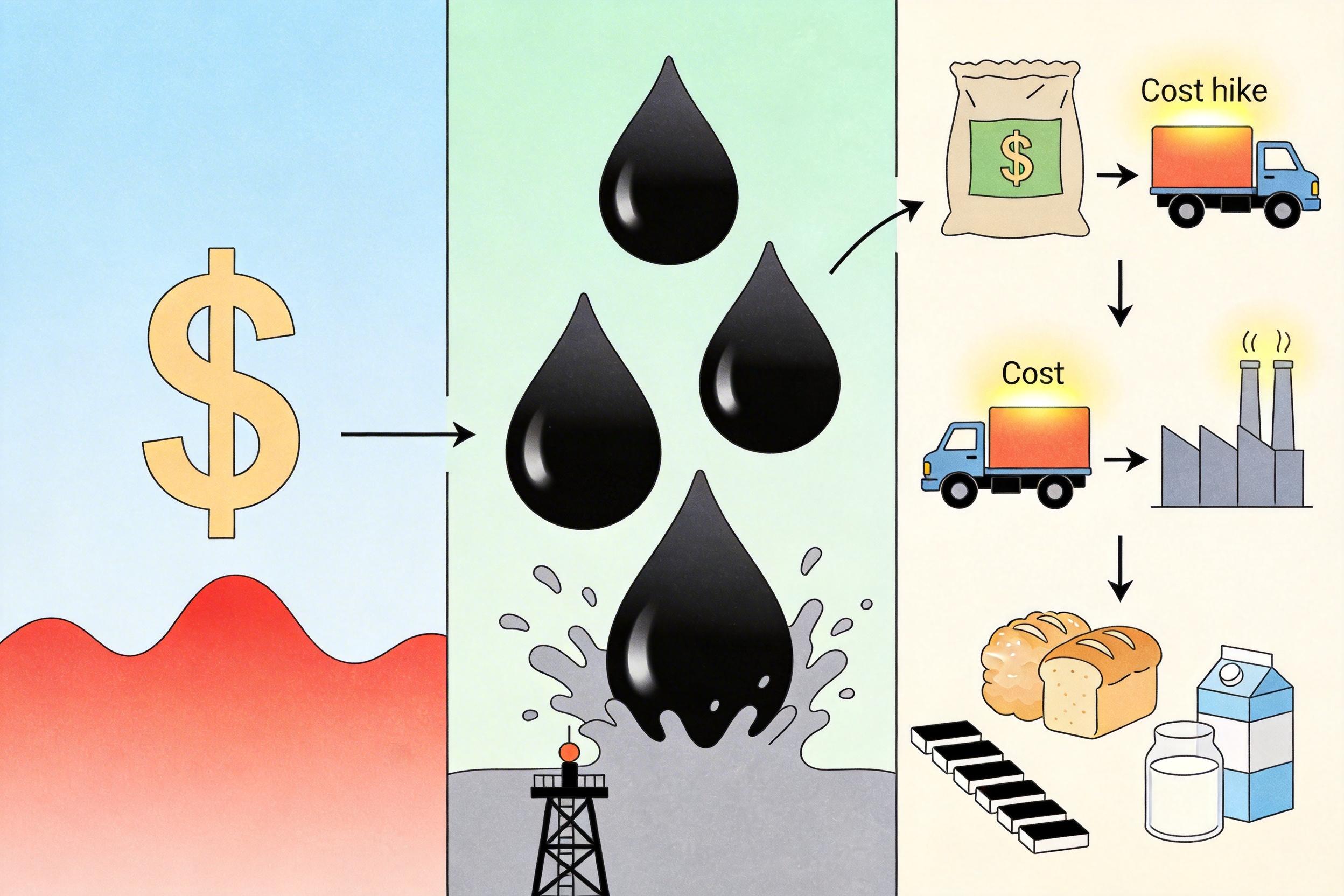 如果说美元失锚是大通胀的「根」,1973年的石油禁运就是把这把火吹成燎原之势的风。阿拉伯国家因美国支持以色列,突然切断石油供应,油价在数月内翻了四倍。当时的美国经济还深深嵌在能源链条里:石油涨一分,化肥、运输、加工成本就涨一寸,最终全堆到食品价格上——1973年底食品通胀峰值超过20%,面包因对俄谷物出口短缺涨价,牛奶因乳制品供应紧张一年涨了30%。这是典型的「成本推动型通胀」,像多米诺骨牌,从能源端一路倒到餐桌。