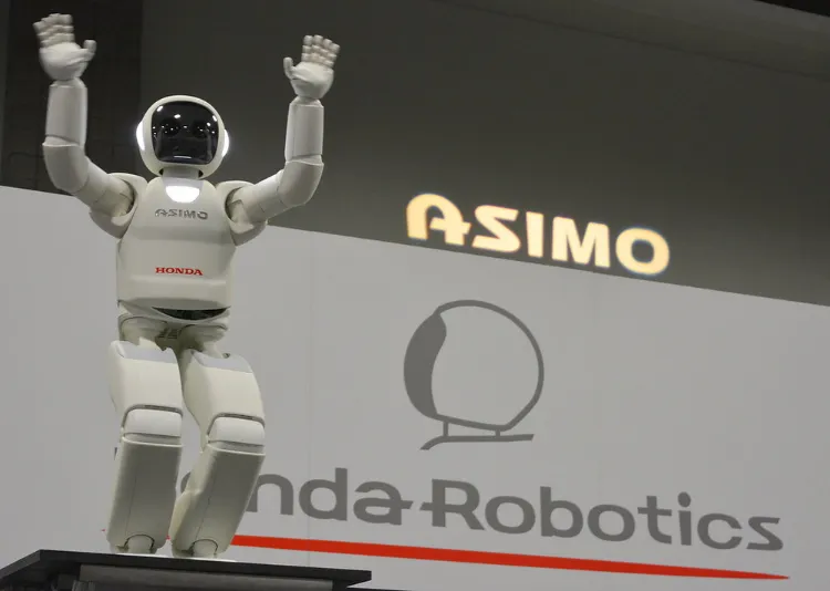 2000年,千禧年的钟声刚刚敲响,ASIMO(Advanced Step in Innovative Mobility)横空出世。它轻巧、敏捷,以前所未有的流畅姿态向世界宣告:双足行走机器人已不再是实验室里的粗糙原型。ASIMO身高1.3米,体重54公斤,这个尺寸经过精心设计,以便能与坐着的成年人平视交流,并轻松够到门把手和电灯开关。它不仅能跑能跳,还能识别人脸、听懂语音指令、与人握手,甚至端茶倒水。它的名字,也是为了向科幻巨匠艾萨克·阿西莫夫(Isaac Asimov)致敬。很快,ASIMO凭借其可爱、无害的形象和超前的技术,成为全球科技界的超级明星。它在纽约证券交易所敲响开市钟,与美国总统奥巴马踢足球,足迹遍布全球的科技馆和大学,成为无数青少年对未来的启蒙。在那个时代,ASIMO就是未来的代名词。