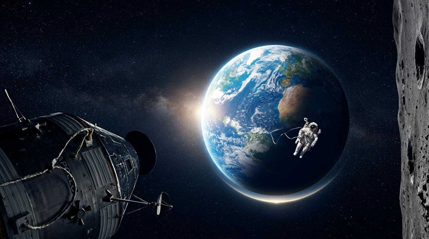 1968年圣诞夜的月球轨道上,宇航员威廉·安德斯按下快门时,绝想不到这张从荒芜月壤上升起的蓝白星球照片,会在10亿次传播里改写人类的自我认知。那层薄如苹果皮的大气层,第一次戳破了“地球资源无限”的集体幻觉——我们不是住在无边无际的大陆上,而是挤在一颗悬浮于冷寂宇宙的脆弱弹珠上。为什么一张照片能催生地球日,能让登月的“美国成就”变成“人类壮举”?答案藏在被我们遗忘了半个世纪的心理震颤里。