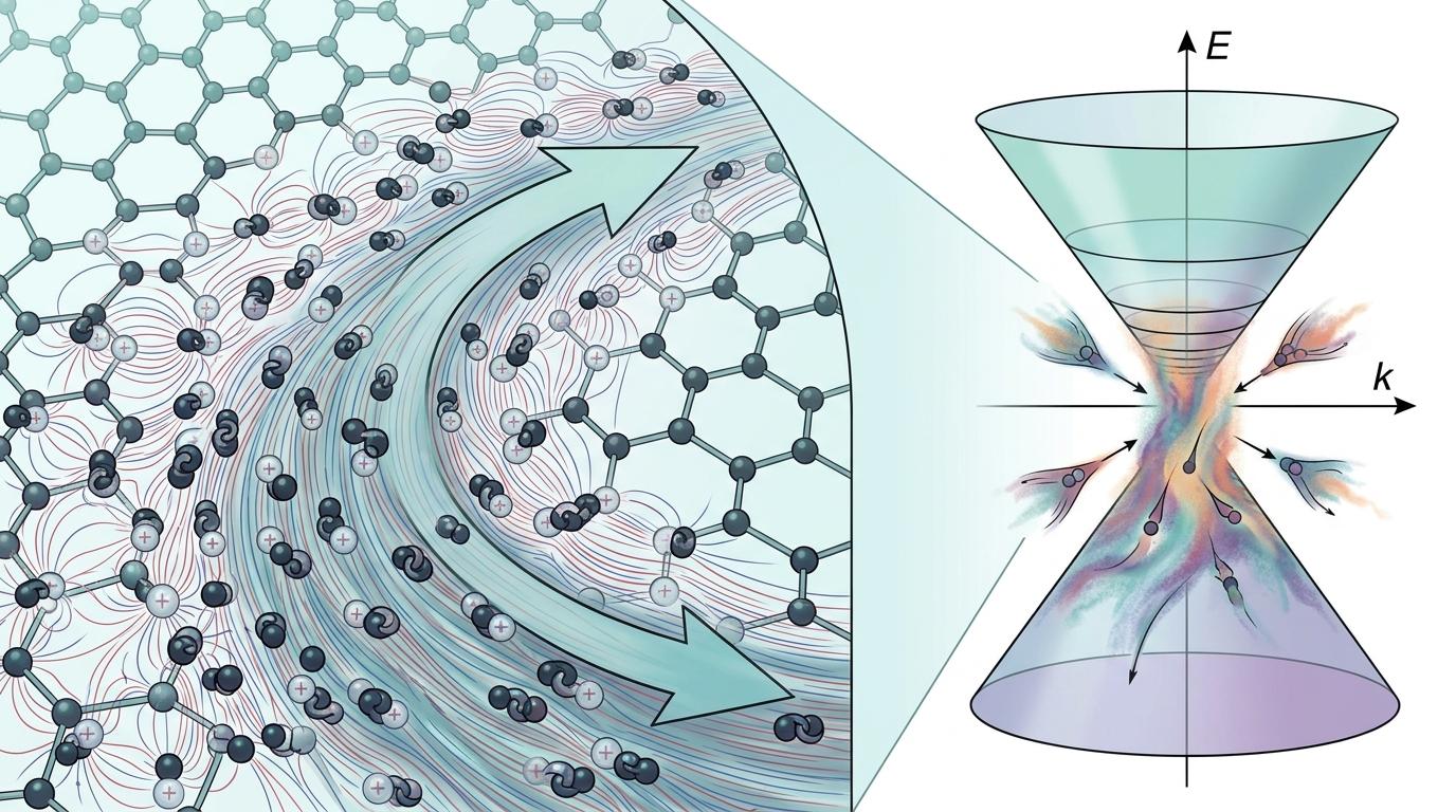 这不是实验误差。狄拉克点上的电子,已经不再是传统认知里“各自为政”的准粒子。电子和空穴(带正电的电子空位)之间的库仑相互作用强到了极致,它们每秒要发生上亿次碰撞,完全失去了独立运动的能力,变成了一滩整体流动的“狄拉克流体”——就像你把无数个乒乓球倒进一个装满水的管子里,乒乓球不再单独滚动,而是跟着水流一起前进。