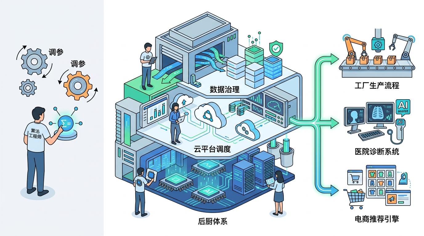 答案藏在AI产业的真实需求里。过去AI是实验室里的算法游戏,现在它要钻进工厂的生产流程、医院的诊断系统、电商的推荐引擎——而能把这些AI落地的,不是只会调参的算法工程师,是懂芯片算力、云平台调度、数据治理全链条的人。就像你要开一家餐厅,不能只会炒一道菜,得懂厨房布局、食材供应链、后厨动线,才能让整个餐厅转起来。AI基础设施就是这个「后厨体系」,它决定了AI能跑多快、能做多大的事。