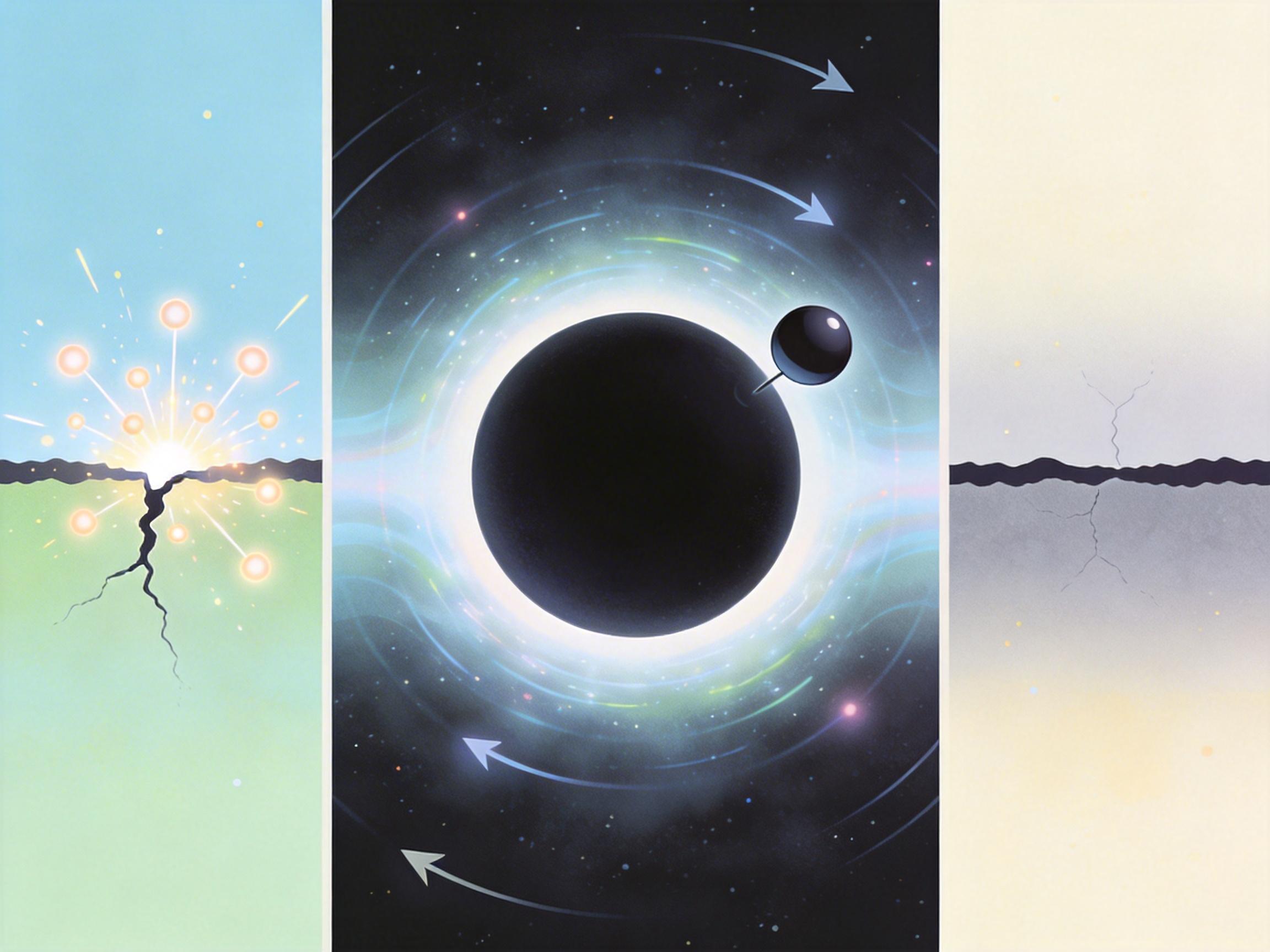 你可以把原初黑洞理解成宇宙大爆炸时的「残次品」:不是恒星死亡坍缩的产物,而是诞生于大爆炸后10^-23秒的密度波动,质量可能小到像一座山,大到像一颗恒星。根据霍金的理论,这种小质量黑洞会通过「霍金辐射」慢慢蒸发——就像热水壶慢慢冒气,质量越小,蒸发越快,最后会在一场爆炸中彻底消失。
