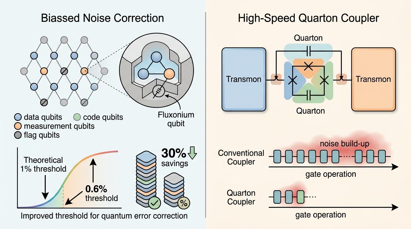这意味着,要实现真正的量子优势,光靠增加量子比特数和电路深度没用——必须先把噪声降到足够低,或者设计出能绕过噪声“遗忘效应”的新型电路。比如针对偏置噪声设计的纠错码,能把纠错阈值从1%提升到0.6%,减少30%的量子比特开销;而MIT的“quarton耦合器”架构,能把量子门操作速度提升10倍,在噪声积累前完成更多有效计算。