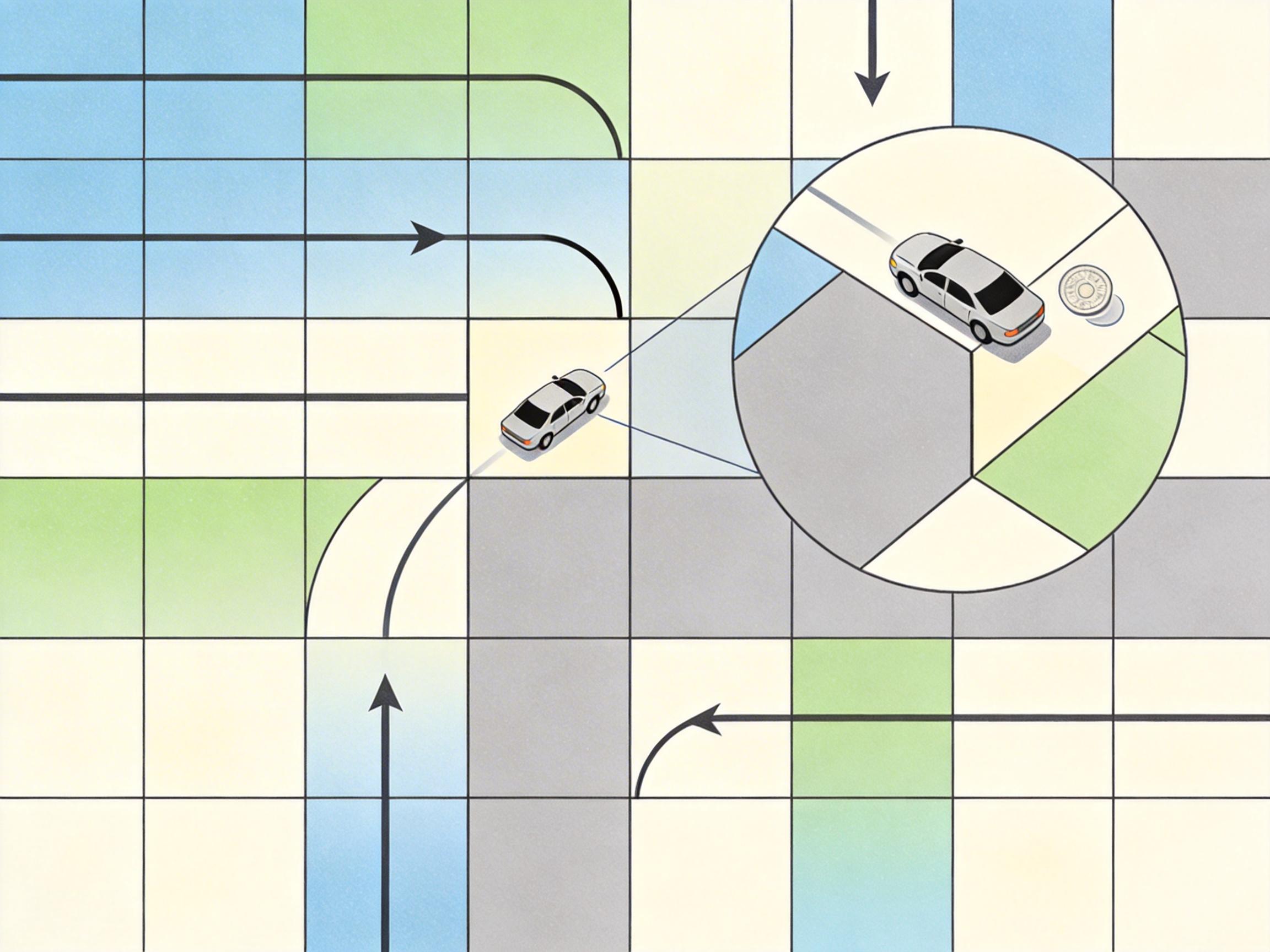整个城市地图被拆成16×16像素的瓦片,每个瓦片自带固定的通行方向——比如有的瓦片只能左到右走,有的只能上到下,拐角瓦片则标注了可转向的方向。小车只要“看一眼”脚下的瓦片,就知道该往哪动,完全不需要提前规划路径。遇到拐角时,它就抛个“硬币”:50%概率直行,50%概率转向,再加上“不能连续左转”的简单规则,交通流就显得自然而不混乱。