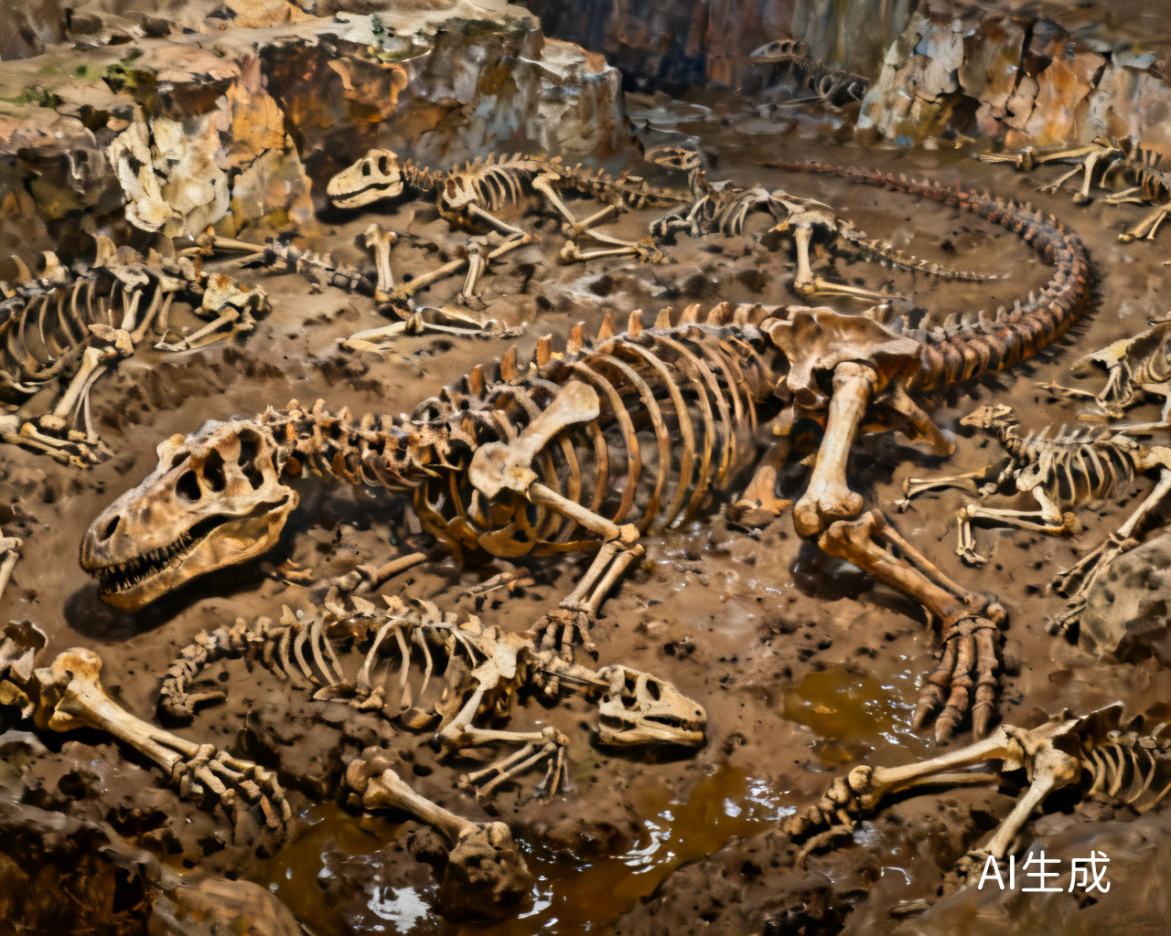 当时的哈策格盆地,气候温暖湿润,属于亚热带环境,但季节性的暴雨频发。源自高地的河流,在雨季会瞬间变为狂暴的洪流。这些突如其来的洪水,如同一台巨大的自然机器,席卷着沿途的一切——无论是活着的生物,还是早已死去的动物尸骸,都被卷入其中,顺流而下。