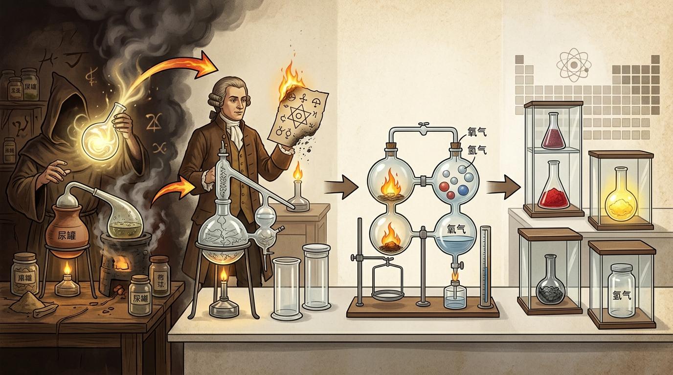1669年,德国炼金术士布兰德在尿罐里煮出了发光的磷——这是人类第一个「近代意义上的元素」,却带着炼金术的荒诞底色。直到1789年拉瓦锡划下界限:元素是不能再分解的简单物质。他烧掉了旧时代的炼金符号,用氧气、氢气重新定义燃烧,把化学从巫术拉向实验。但此时的元素还只是零散的珠子,没人能把它们串成项链。