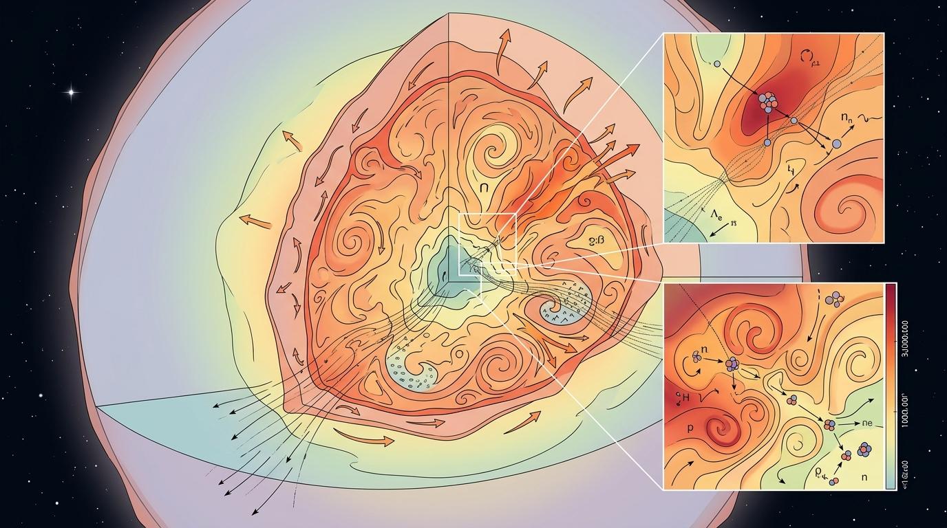 过去的伽马过程模型,都默认超新星内部是个“均匀的高压锅”——温度、密度、冲击波速度都是平均数值。但这次实验的数据告诉我们,真实的超新星可能复杂得多:也许爆炸的冲击波不是球形的,不同区域的温度差能达到几亿摄氏度;也许恒星的旋转会把原料搅成漩涡,让伽马射线的分布完全没规律;甚至可能还有中微子在偷偷“帮忙”,把质子转成中子,改变整个反应的走向。