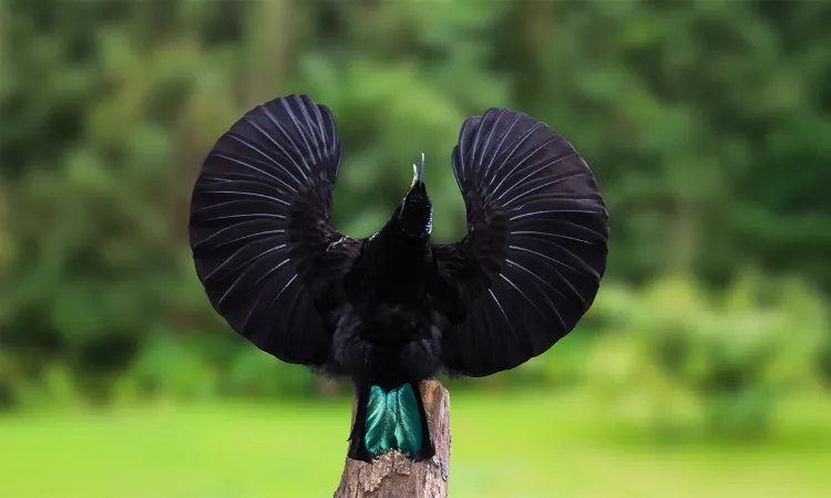 当光线射入这片“森林”,它不会被直接反射,而是在无数微小的空腔中反复弹跳、散射和吸收,直至能量耗尽。这一过程,被称为结构性吸光。正是这种精妙的物理结构,使得壮丽步枪鸟的羽毛能够吸收高达 99.95% 的直射光,其深邃程度堪比人类用碳纳米管制造的顶级超黑材料Vantablack。大自然用亿万年的演化,创造出了一个无毒、轻便且高效的“黑洞”。这种极致的黑,并非为了伪装,而是为了让周围鲜艳的求偶色块显得愈发璀璨,仿佛在黑暗的舞台上凭空发光——这是演化谱写的一首关于视觉与生存的光影之诗。