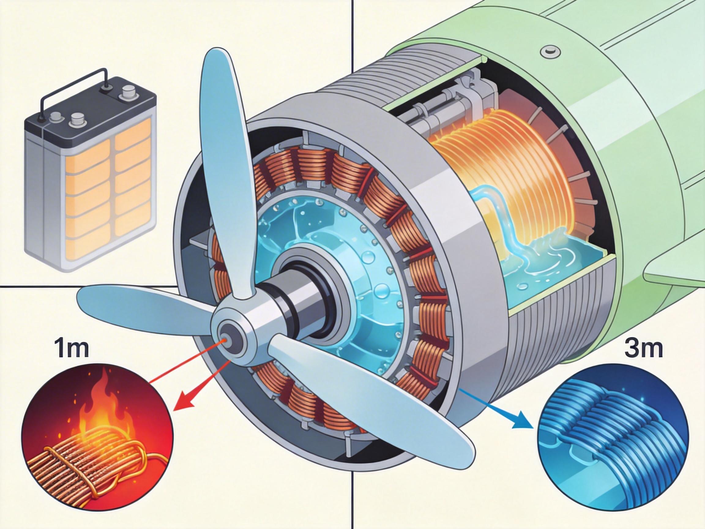 但这并非无代价的创新。为了在低转速下输出足够的扭矩,电机的直径必须做得很大——Joby的电机直径接近1米,相当于把一个大号平底锅直接装在螺旋桨上。这对材料强度和热管理提出了极高要求:电机在垂直起降时要输出3倍于巡航状态的功率,产生的热量足以融化普通铜线。Joby的解决方案是用液冷系统直接冷却定子线圈,同时采用垂直整合的生产模式,从电机绕组到电池包都自己生产,确保每一个部件都能完美适配这套无齿轮的动力系统。