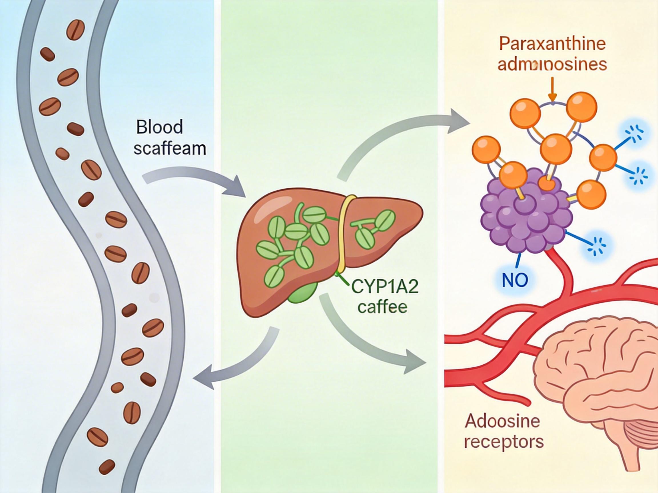 但咖啡因在血液里待不了太久,平均4到5小时就会被肝脏的CYP1A2酶拆解。这时候真正的主角才登场:80%的咖啡因会转化为帕拉克黄嘌呤,它不仅能牢牢绑定腺苷受体,亲和力比咖啡因还高1.5到2倍,甚至能额外通过抑制磷酸二酯酶9,增强一氧化氮信号,让大脑血流更顺畅。
