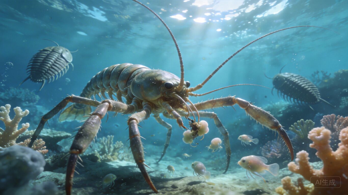 三叶虫没什么脑子,神经节只够支撑逃跑反射,却进化出了堪比“水压雷达”的感知系统:奇虾在五米外摆尾的水流震动,能瞬间触发它们的逃生指令。更棘手的是三叶虫的矿化硬壳,奇虾那圈由软质甲片拼成的口器,啃起硬壳就像塑料吸管嗑帝王蟹,动静大却咬不开分毫。这不是捕食者对猎物的碾压,是一场被死死卡住的进化内卷。